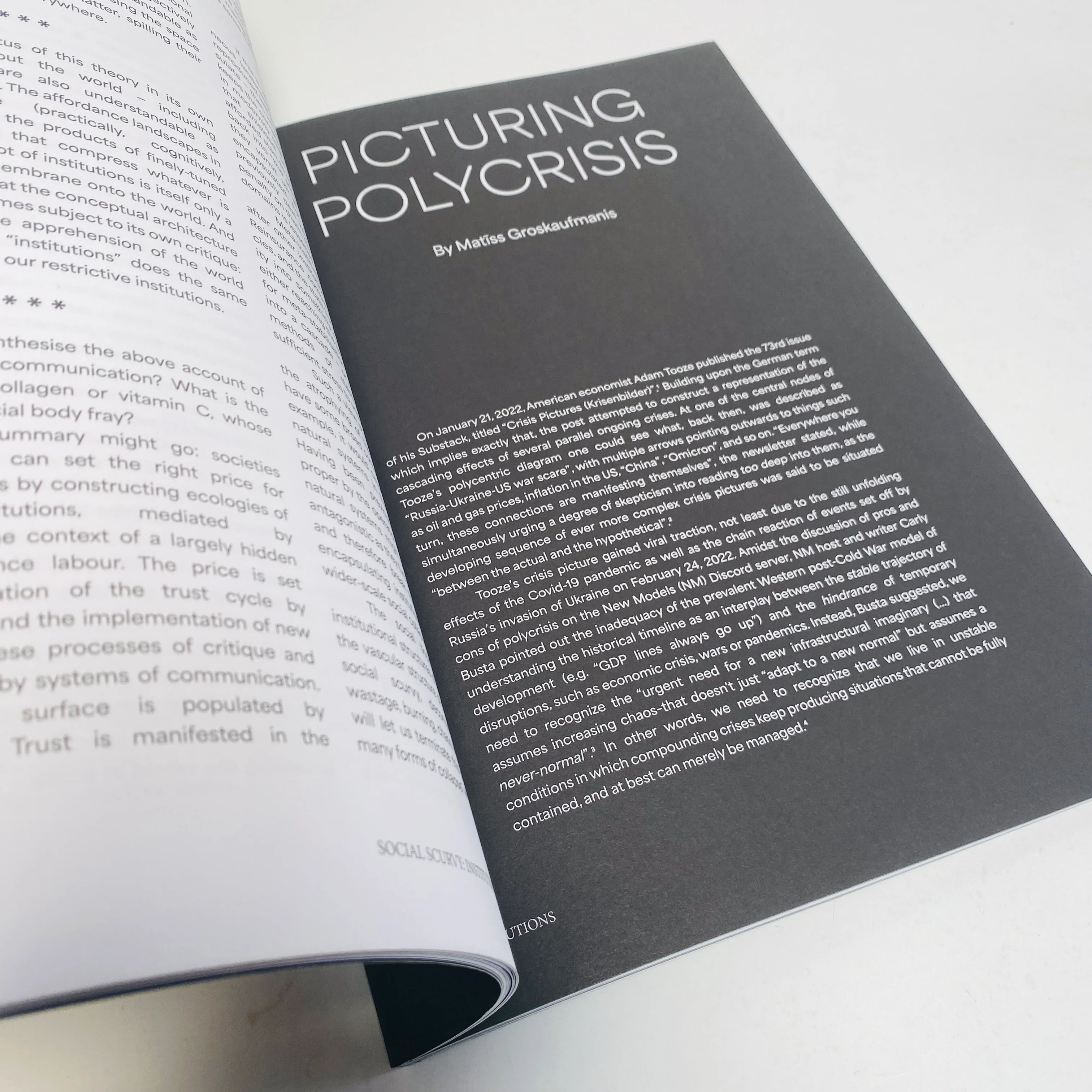 Born from a reading group started in lockdown and published with the support of media platform New Models, this publication tracks the trajectories and temporalities of modern collapse. Our contributors, drawing from their various disciplinary backgrounds (art, music, activism, design, sustainability, political analysis), capture our unique current moment through media both written and visual.