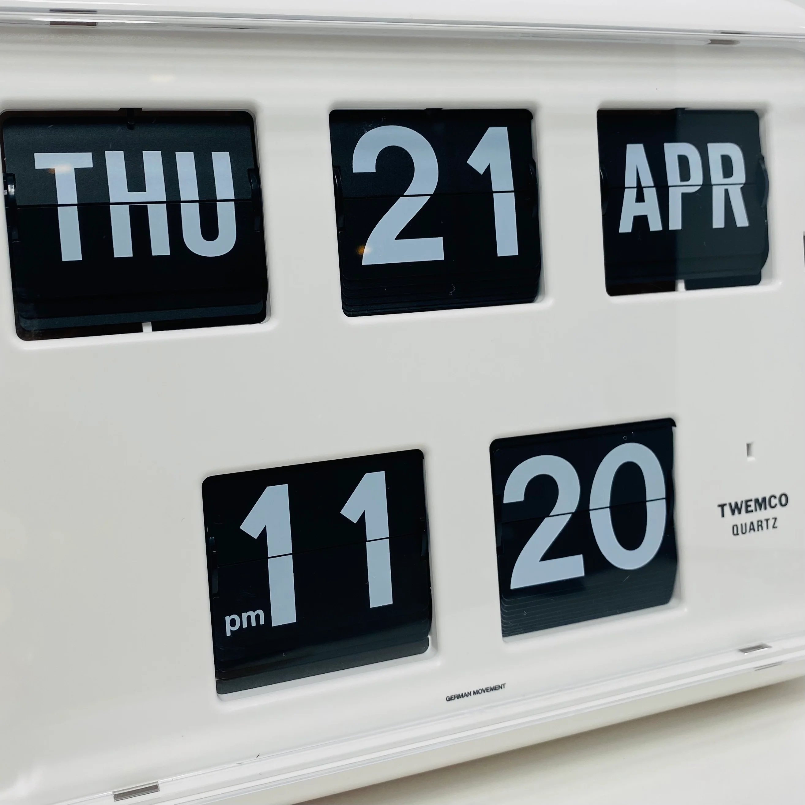 TWEMCO Calendar Flip Wall Clock QD-35 White